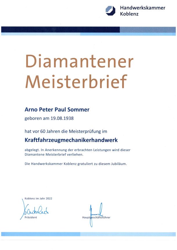 Autohaus Sommer Gründung durch Arno Peter Paul Sommer